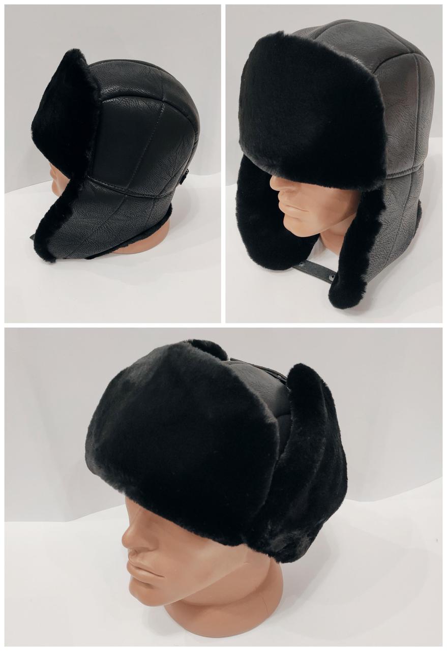 Шапка вушанка чоловіча Зима шкіра + хутро