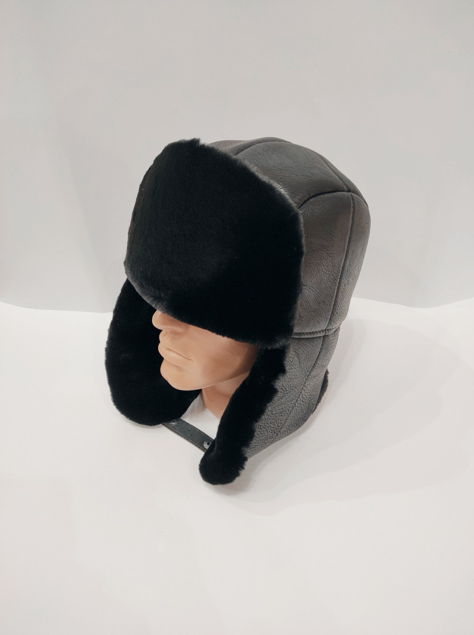 Про Шапка ушанка молодіжна зима кожзам + хутро чорний